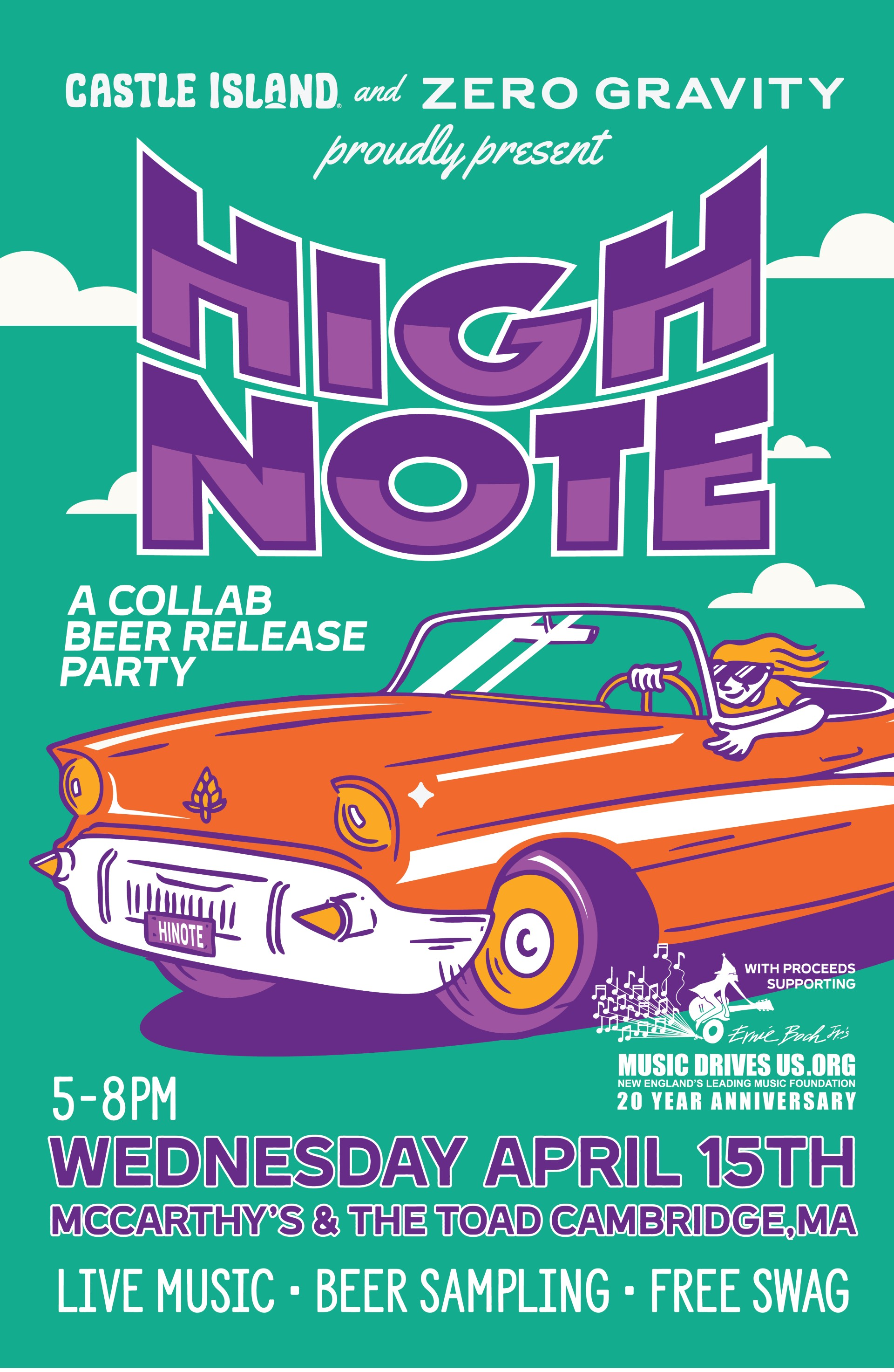 Description: High Note is our long-awaited collab with our friends at Zero Gravity, and yes, we absolutely nailed it on the first try, no warm-up needed. Brewed with New England-grown base malts, Mass-grown Cascade hops for a crisp backbone, and Vermont-grown Crystal hops in the dry hop, this pale lager is all about harmony.